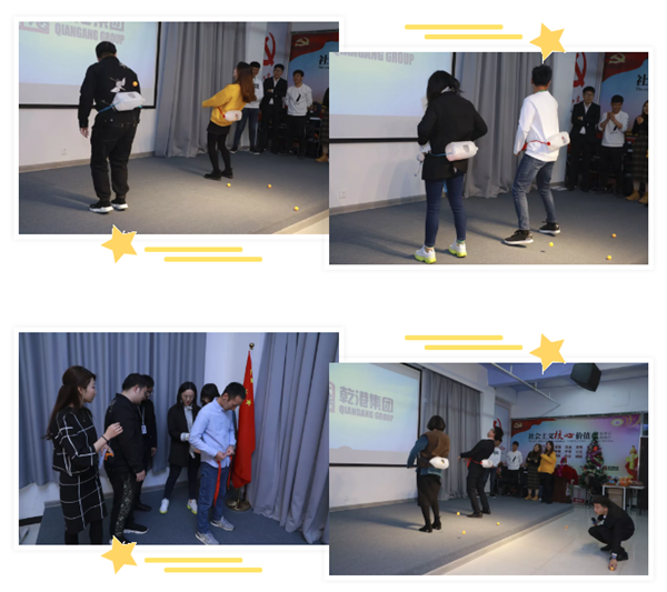 那么,接下來就開始了我們的生日會(huì)趣味小游戲環(huán)節(jié)啦~首先進(jìn)行的是“奔跑的小馬達(dá)”。游戲要求將臺(tái)上壽星分為兩組隊(duì)員,把盒子綁在后腰臀部處,不允許用手觸碰,不能跳,只能靠腰部臀部的抖動(dòng),將所有的乒乓球從盒中抖落,每組進(jìn)行接龍比賽,當(dāng)前一個(gè)隊(duì)員抖出乒乓球時(shí)就換下一個(gè)人,所有的隊(duì)員完成后用時(shí)最短,剩余小球數(shù)量最少的隊(duì)伍獲勝。